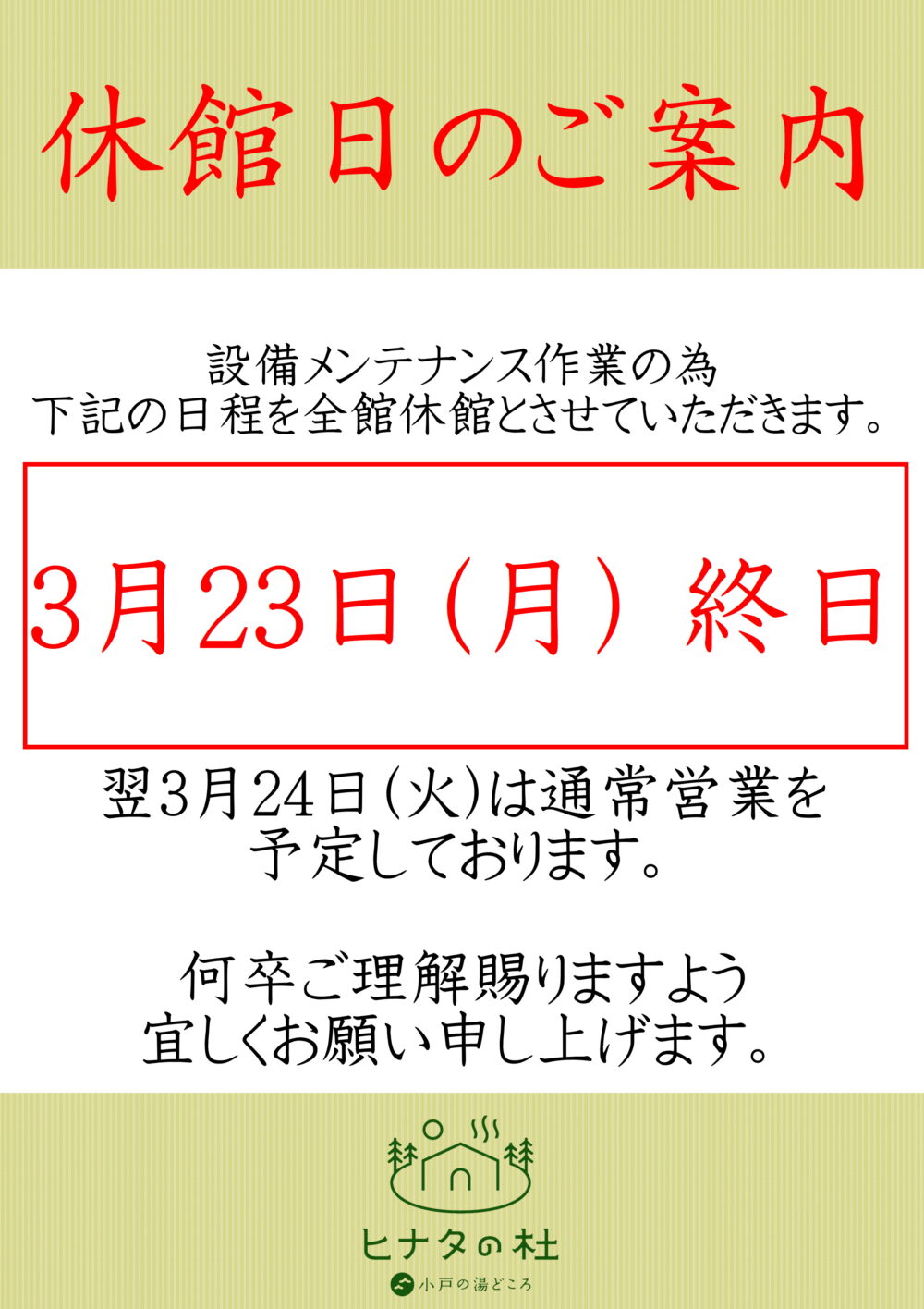 休館日のご案内